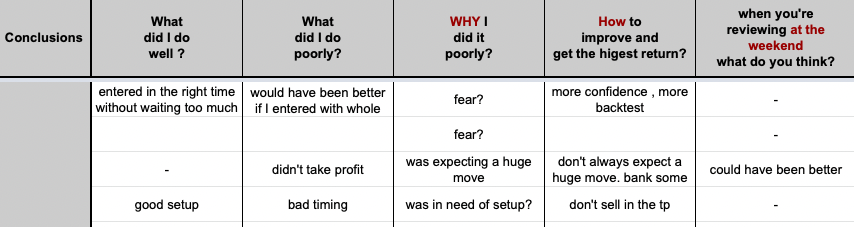 Did I follow my plan? Did you follow your plans while you was managing the trade and for the exit? it will be useful in the analysis of your problems.