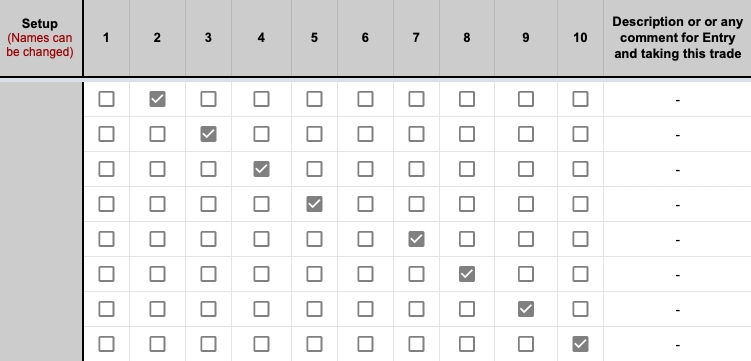 When you change those names, the names of the setups in another sheets like Setup Statistics will also get changed. so change the name of your setups only here.
