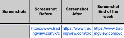 Screenshot End of the week: screenshot at the end of the week when you're reviewing your trades to compare and see what happened after the trade.