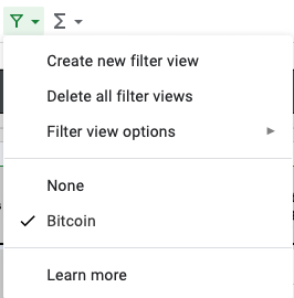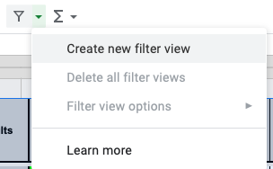After you have selected all the cells, you should click on the "create new filter view" on the dropdown menu of the filter fuction.